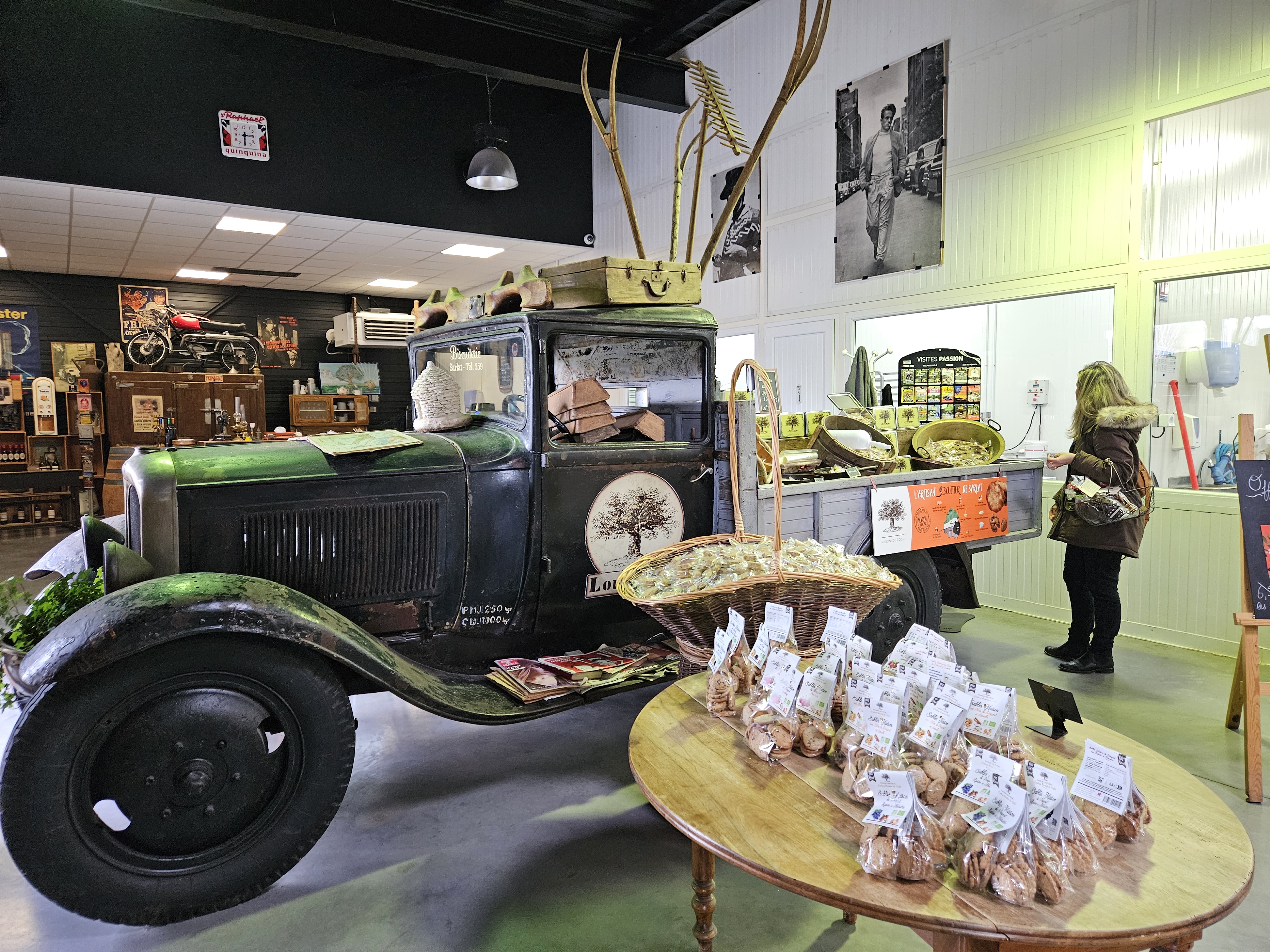 Boutique sympathique avec vue sur la chaîne de production. Le personnel est très accueillant et vous pouvez trouver un large choix de biscuits, biscottes et boissons. Belle boutique joliment décorée avec d'anciens véhicules et anciennes affiches de cinéma. Cette boutique abrite aussi un comptoir si vous souhaitez faire une pause et vous rafraîchir.