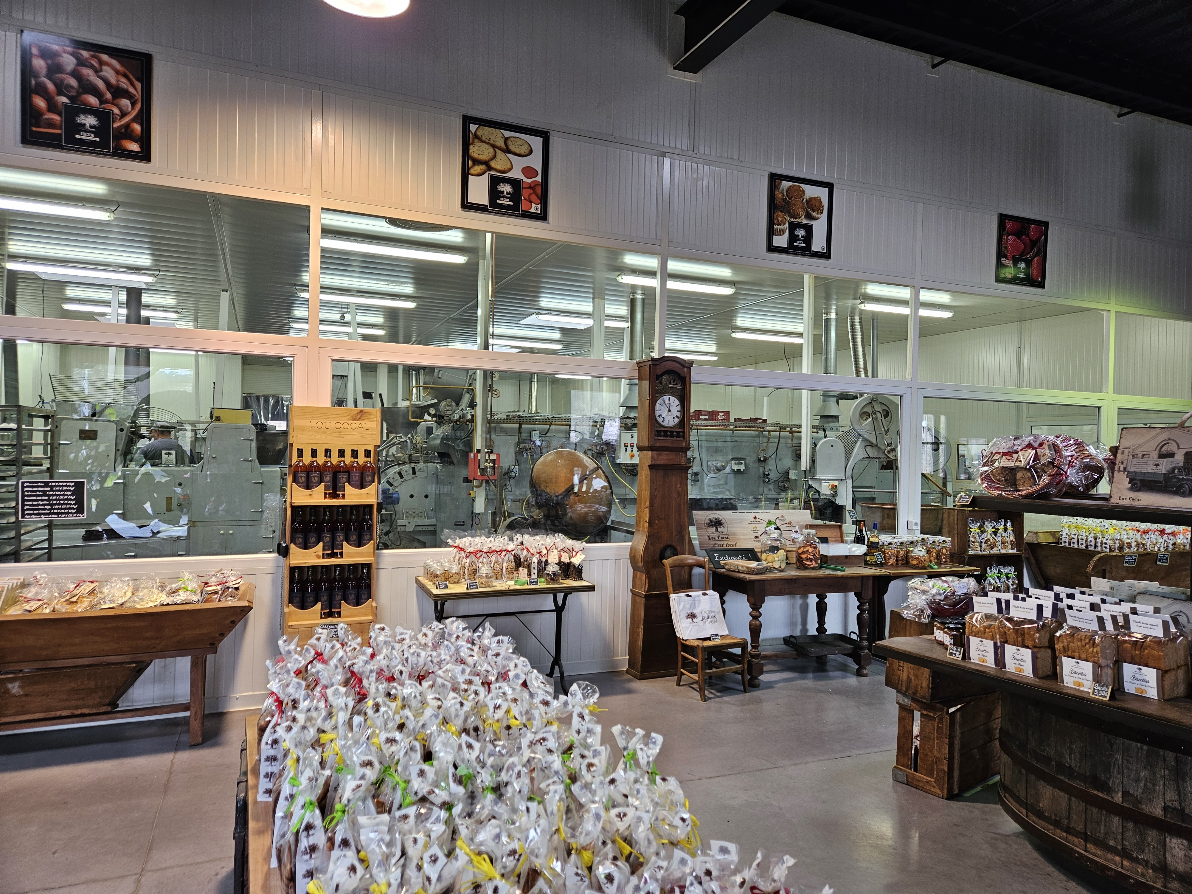 un petit arrêt s'impose!!Vous voyez la fabrication en direct.Biscuits excellents et de qualité. Dégustation. Belle boutique familiale.Acceuil chaleureux. Et le berger australien..trop mignon On a passé un bon moment.