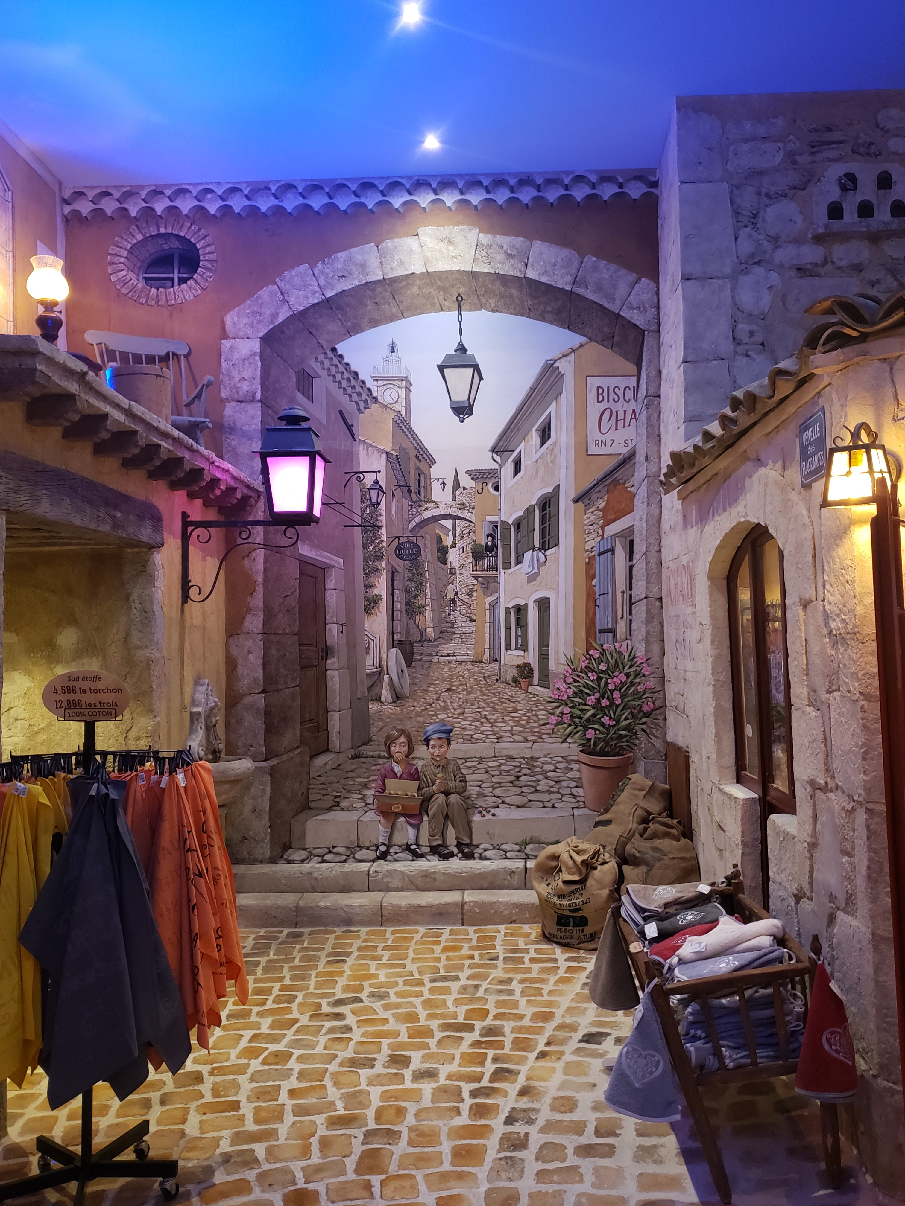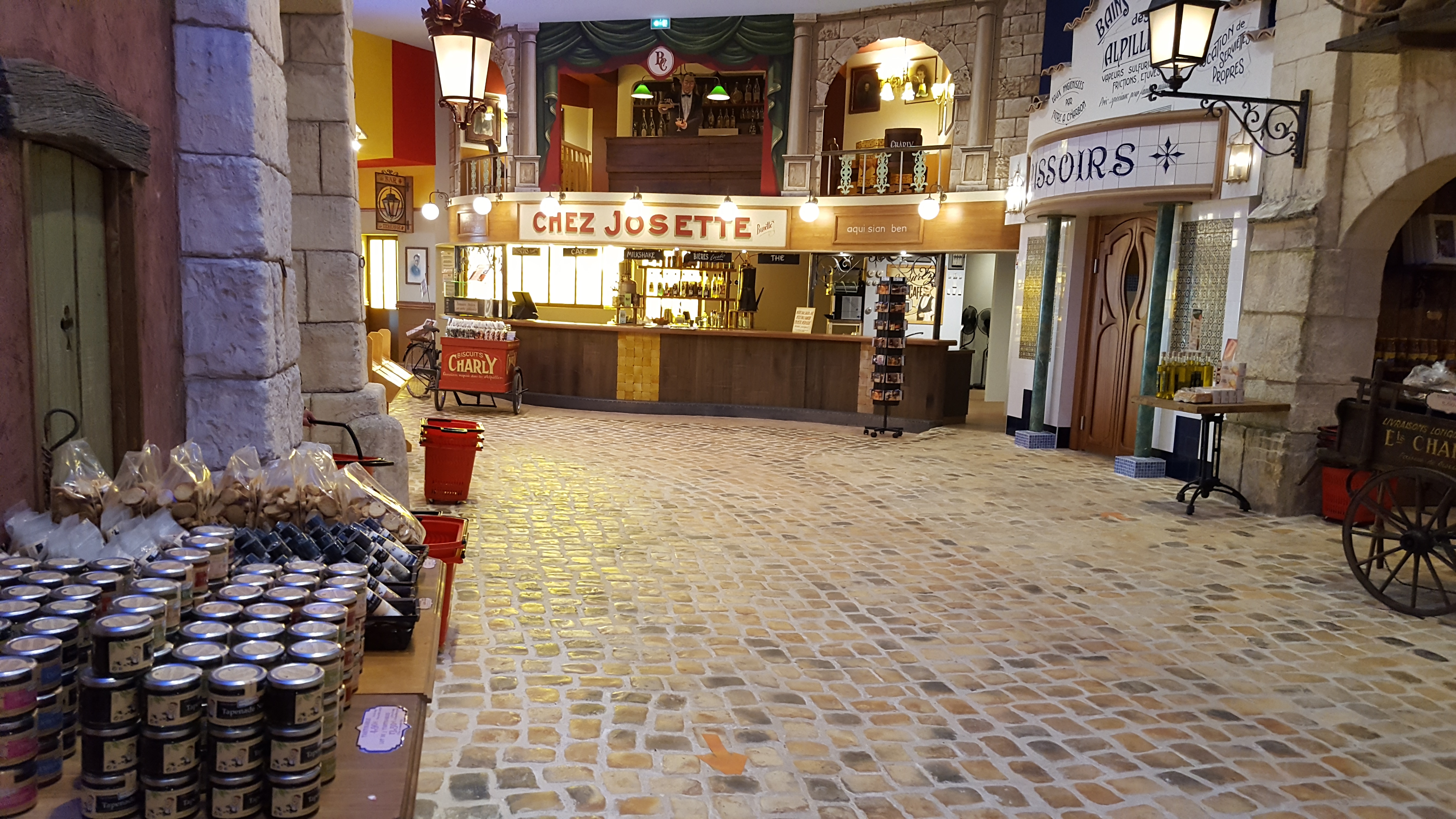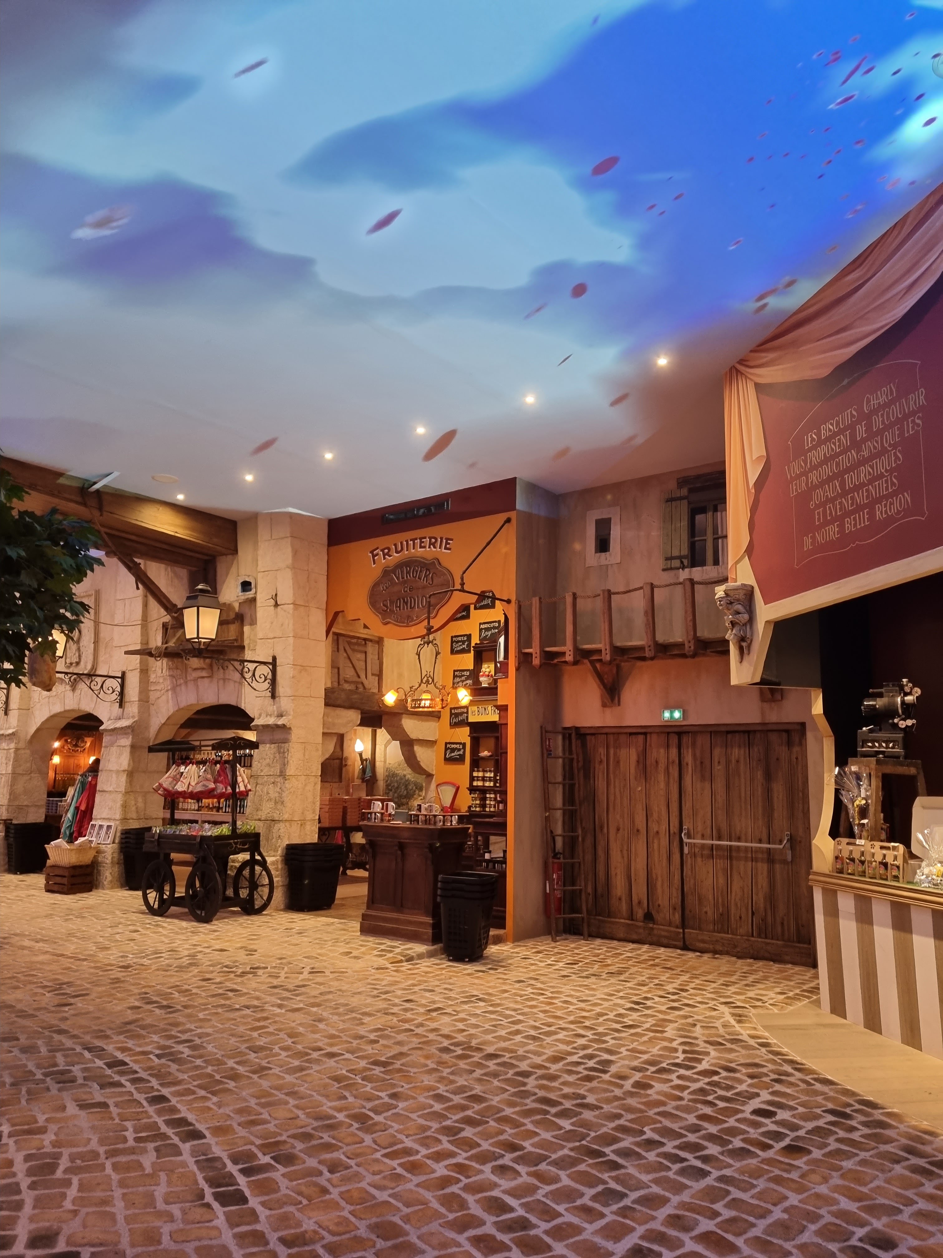 Un village recréé dans l'enceinte de l'établissement, des trompe l'œil magnifiques, même le faux ciel est animé