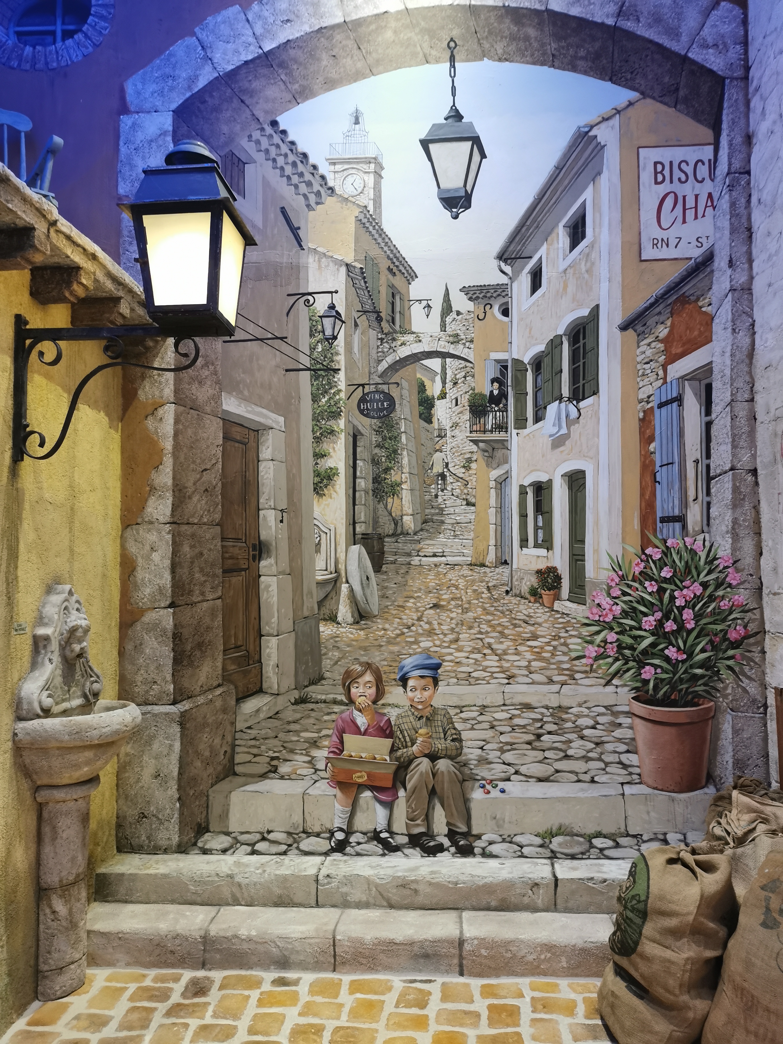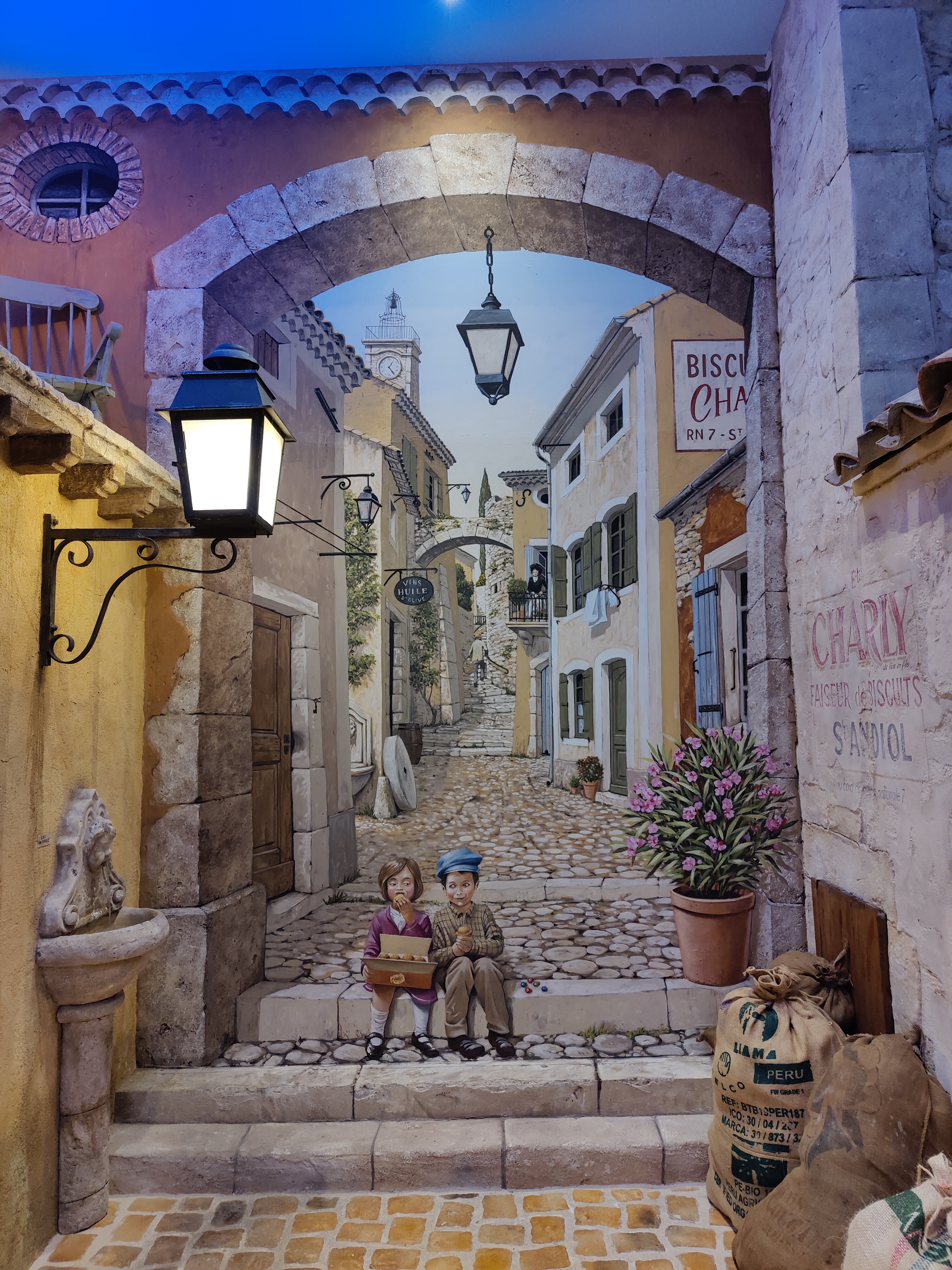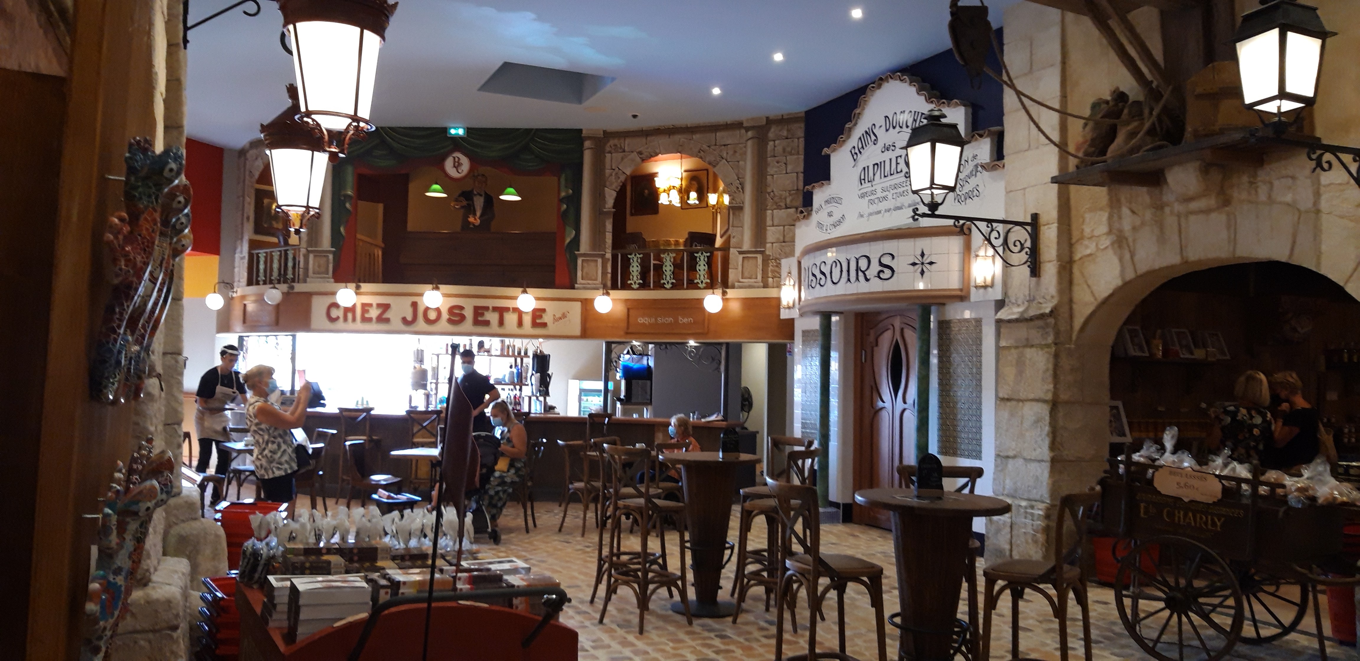 Un village recréé dans l'enceinte de l'établissement, des trompe l'œil magnifiques, même le faux ciel est animé