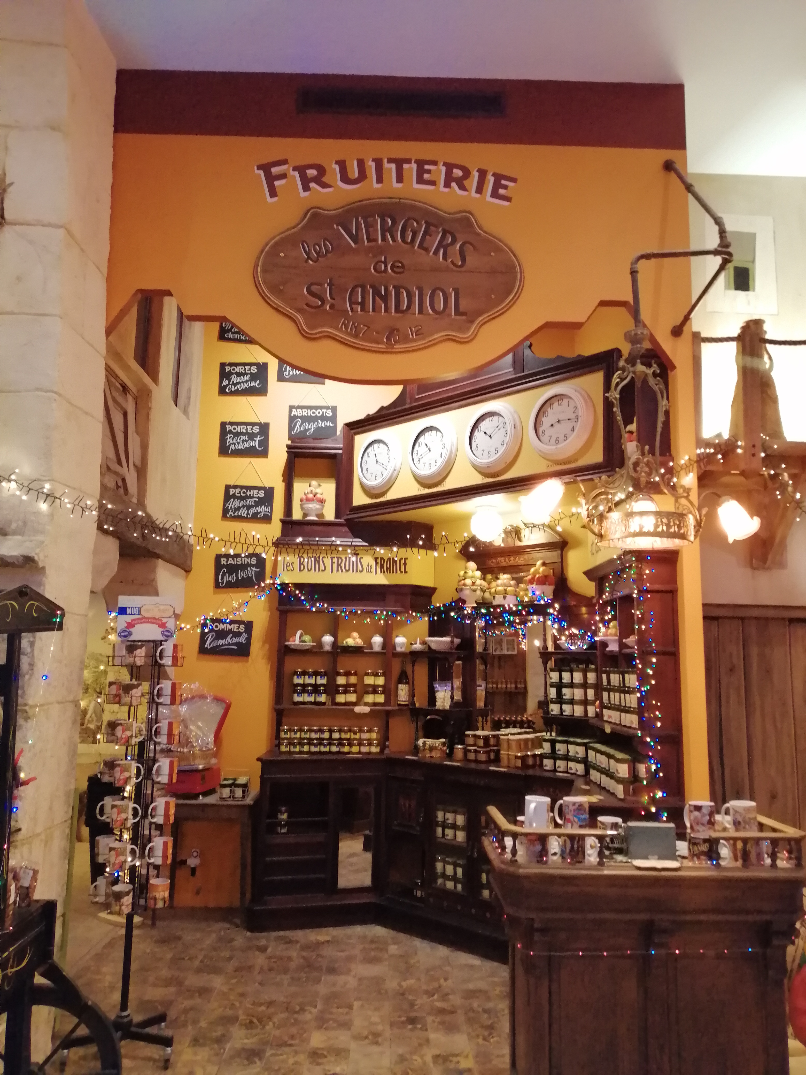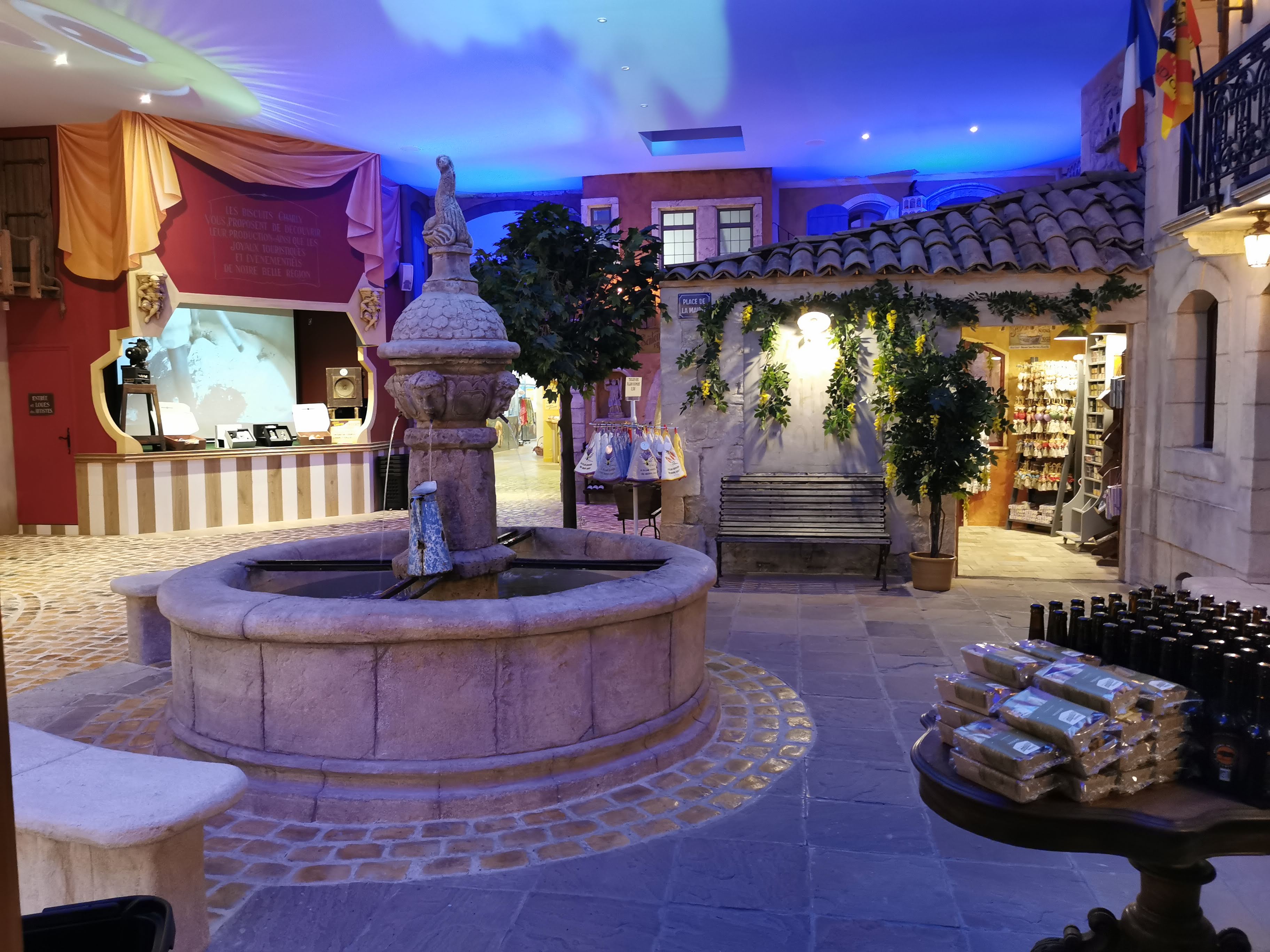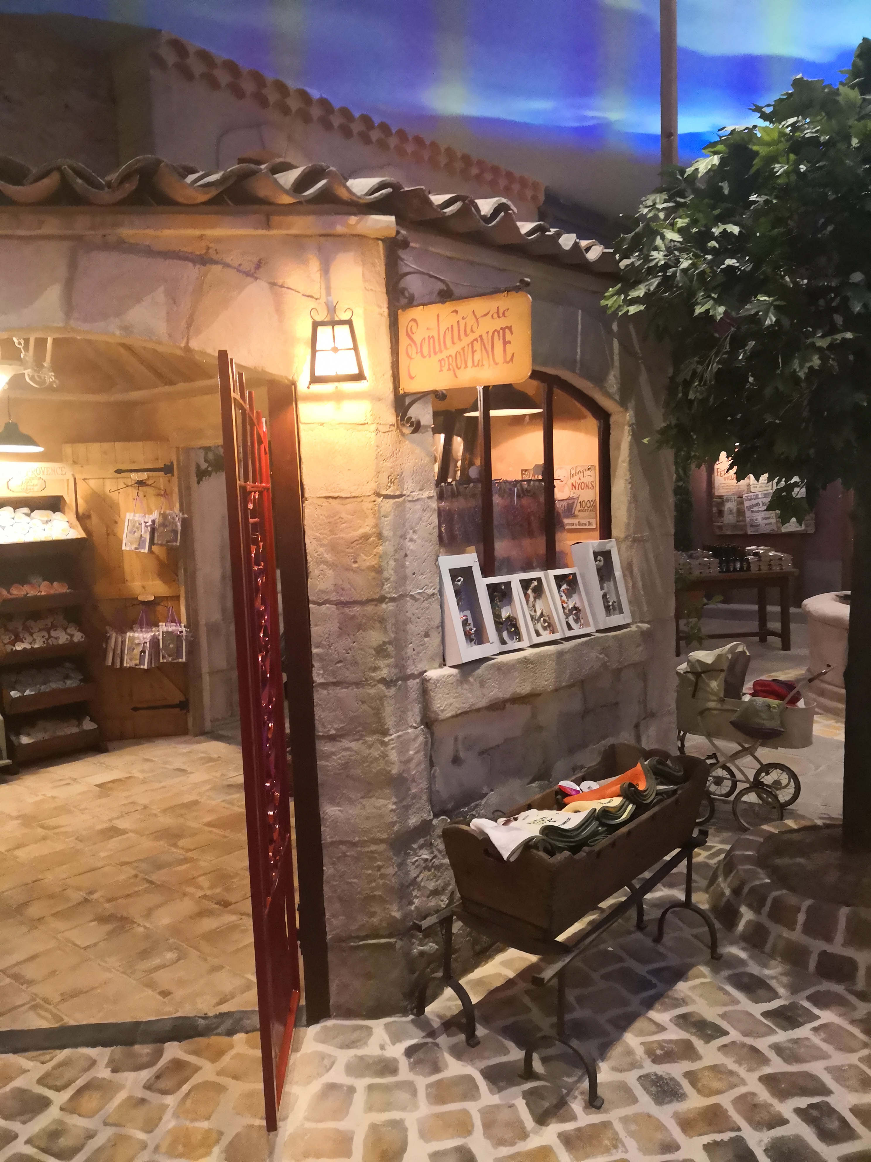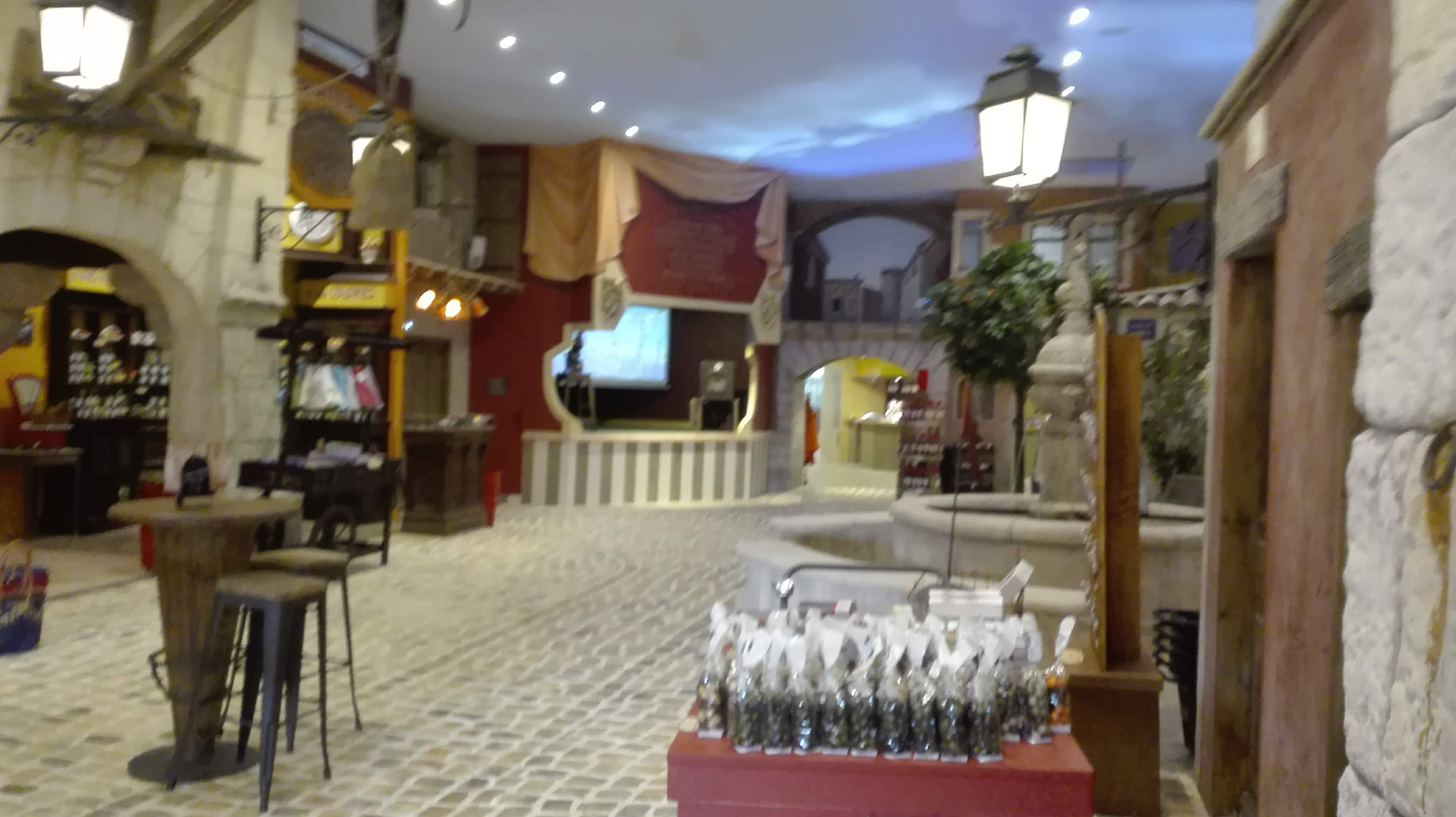 Tout simplement magnifique. L'intérieur c'est un village provençal avec de vrais fontaines et une rue de pierre. On a l'impression d'être dans un petit village décoré avec goût. On y trouve un mini bar avec quelques tables même le plafond est un ciel Bravo à celui qui a pensé à la décoration. Mais le mieux cest d'y aller vous même pour vous rendre compte. En plus on y trouve les 4 quarts de tous parfum et des jus de fruits super bravo bravo