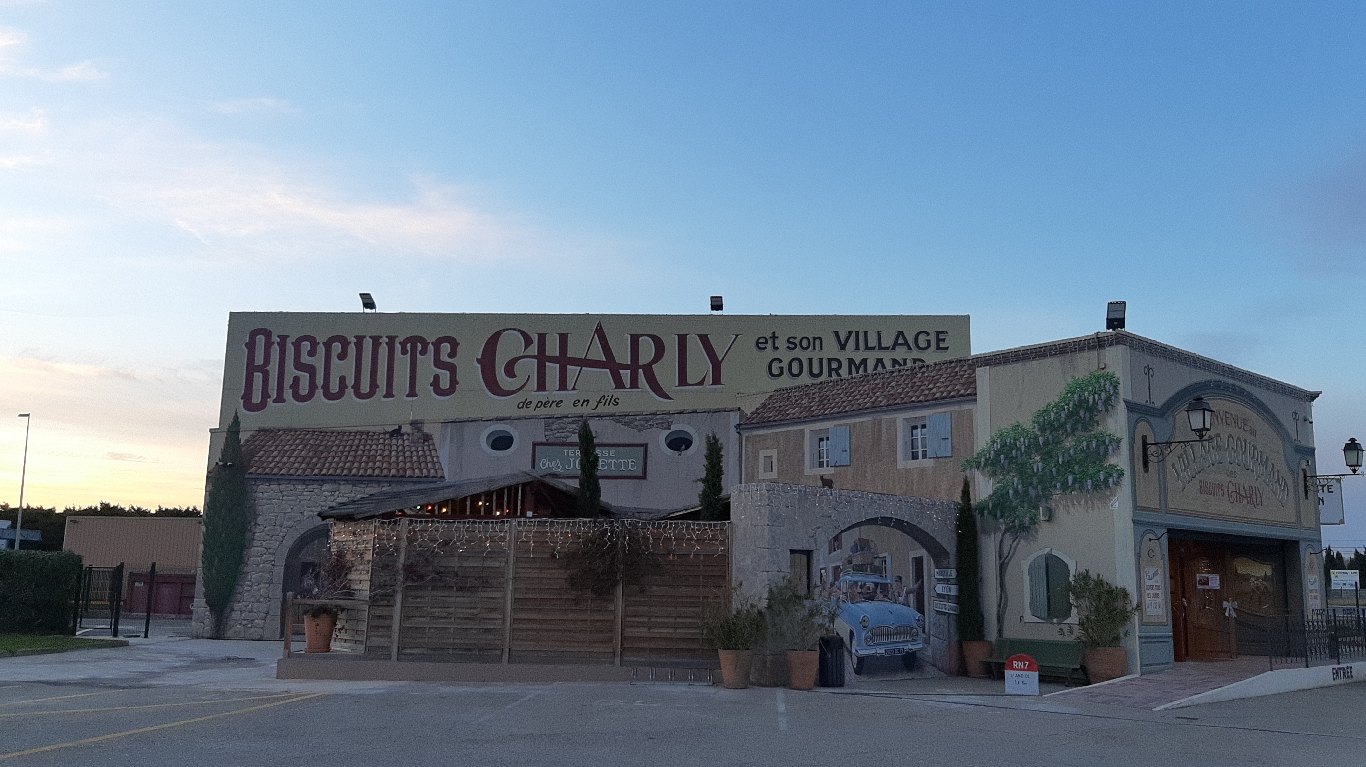 Tout à fait charmant que ce village provençal reconstitué. Fantaisie, humour, traditions sont inscrites sur les murs du village et nous rappelle, la typicite des régions de notre pays. Un choix démesuré de gâteaux secs, friandises ,produits provençaux nous mettent l'eau à la bouche 🤑. Nous avons adoré les babas au rhum et les rochers de Charly . Grand parking, prévoir de grands sacs si vous êtes gourmands.