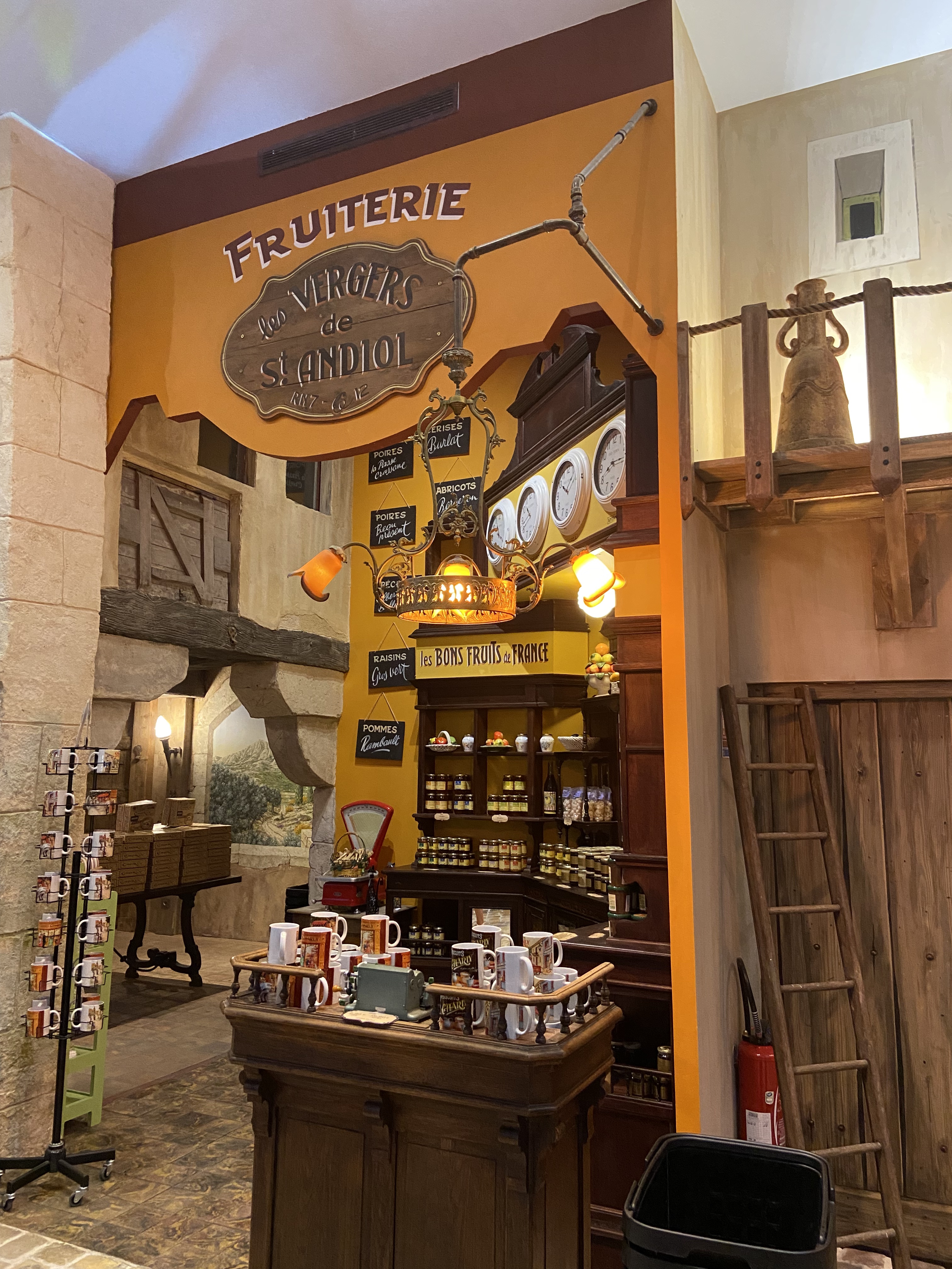 Très joli lieu représentant une rue de l'ancien temps avec ses commerces et sa fontaine. Beaucoup de choix de gâteaux secs et petits cakes mais aussi vins, miel, jus de fruits, friandises, etc... Un peu cher mais la qualité est là. Quelques animations au cours de l'année. A visiter de préférence durant ces animations avec les enfants.