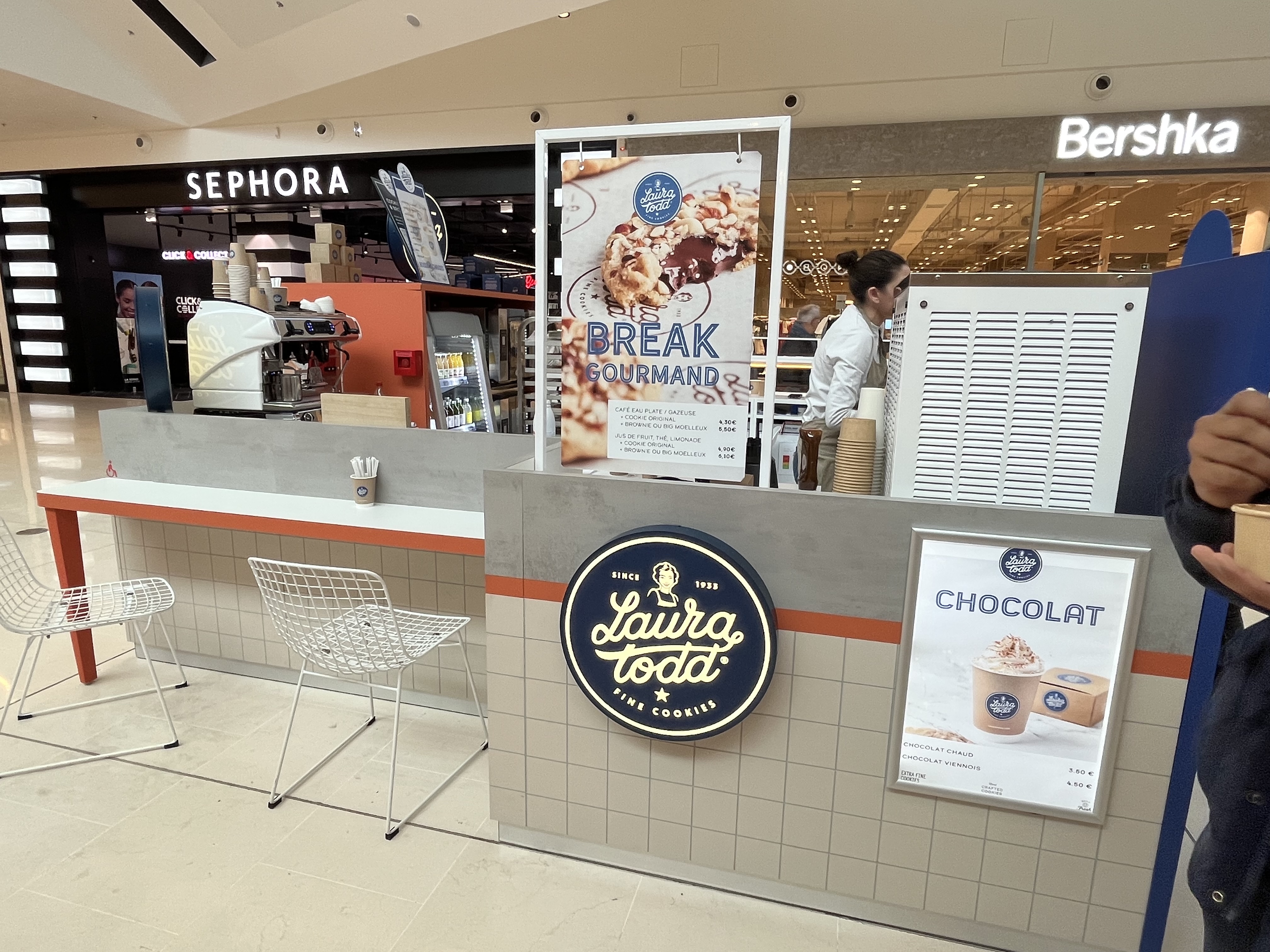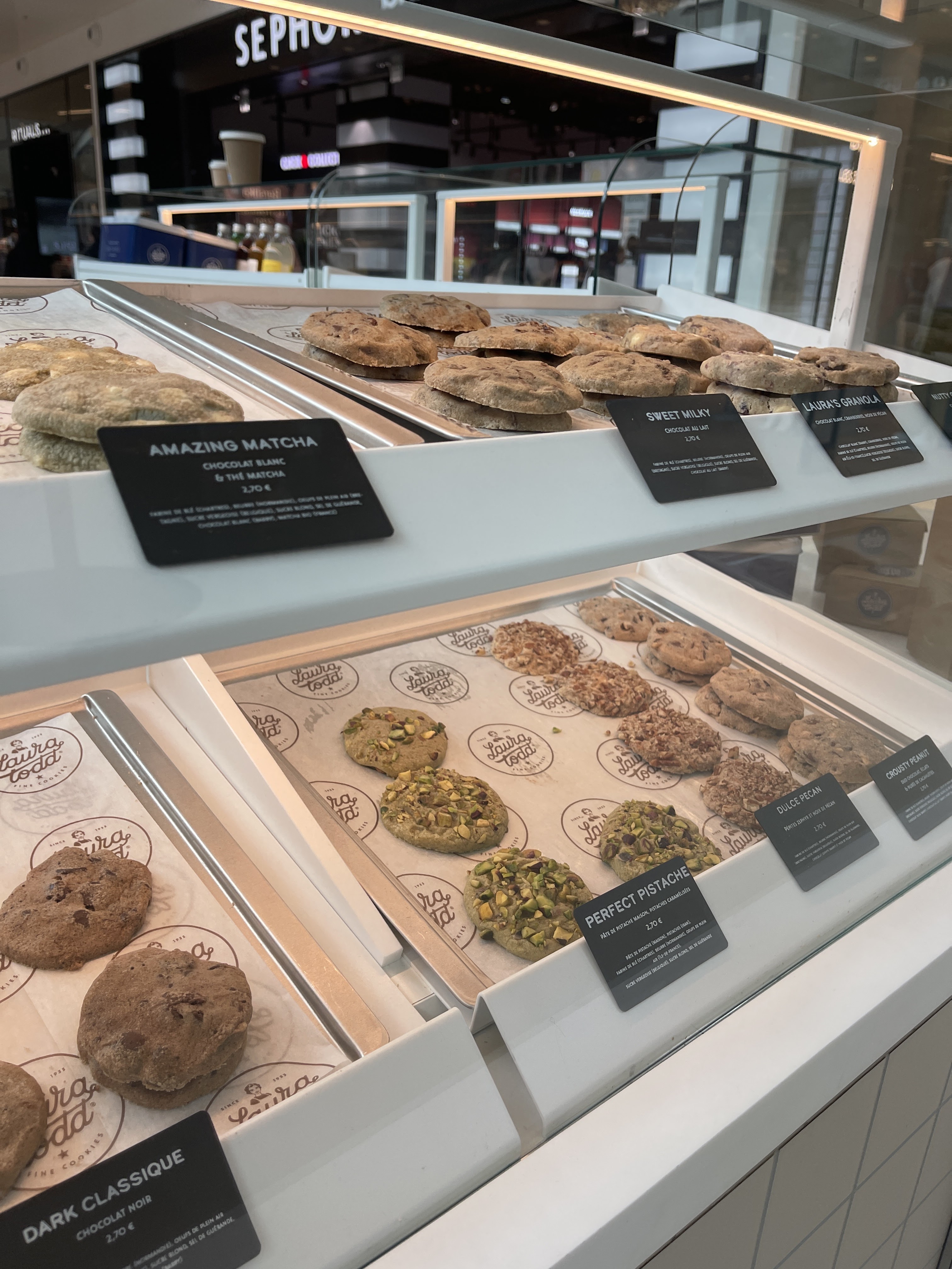 Je laisse pas souvent d'avis sur les franchisés. Les cookies de Laura Todd sont délicieux. S'agissant de la boutique dans les 3 Fontaines, l'accueil est excellent. La vendeuse est très sympa. Je manquerai pas d'y repasser pour un goûter.