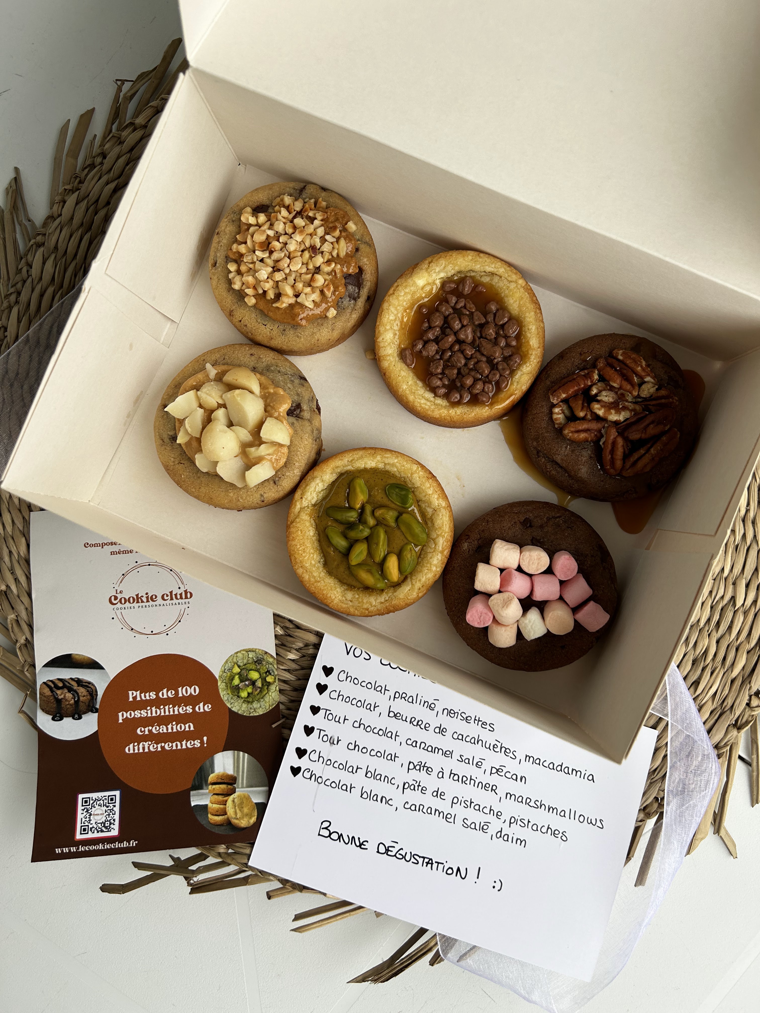 Des cookies délicieux : un vrai régal ! Livrés rapidement. De la grande qualité ! Bravo au cookie club.
