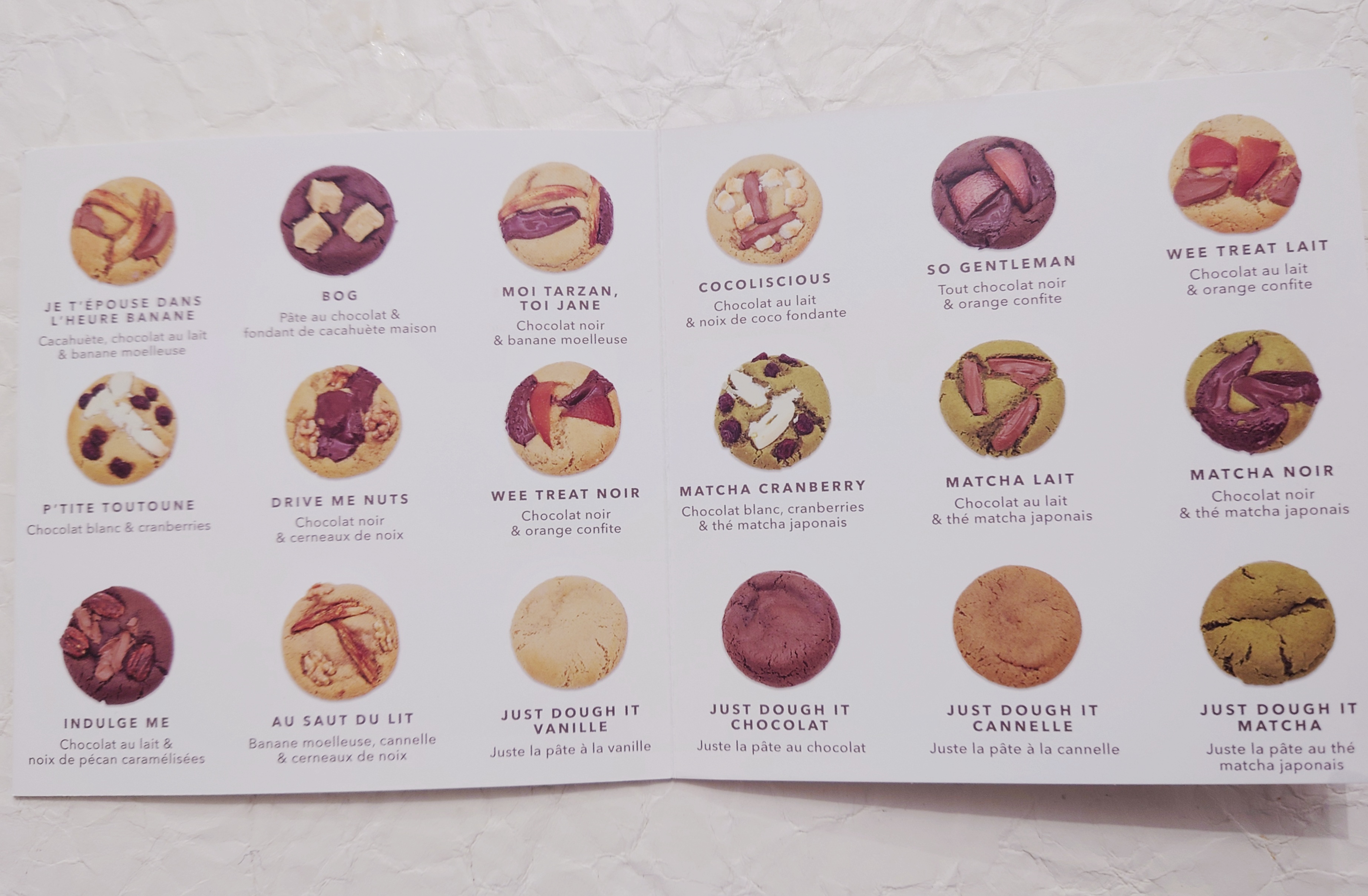 Ohllaa comment faire croire qu'il y a plein de goûts différents grâce au visuel alors que tous les cookies de la carte ont la même saveur : SUCRE. La vendeuse était adorable par ailleurs.